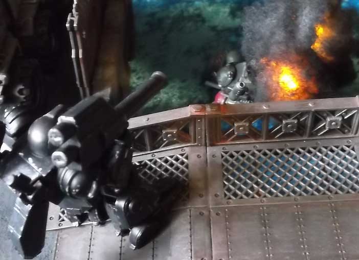 Shoulder, who pours fire onto the bridge.