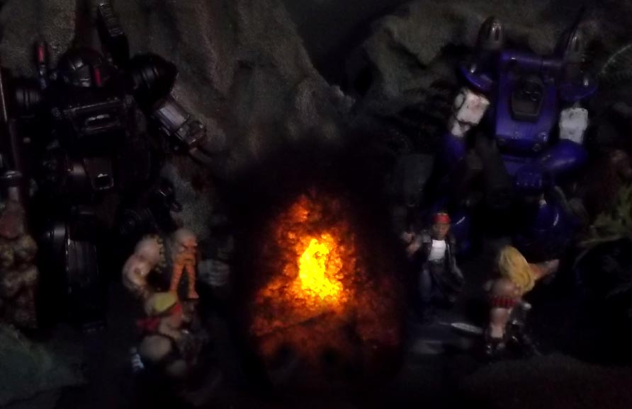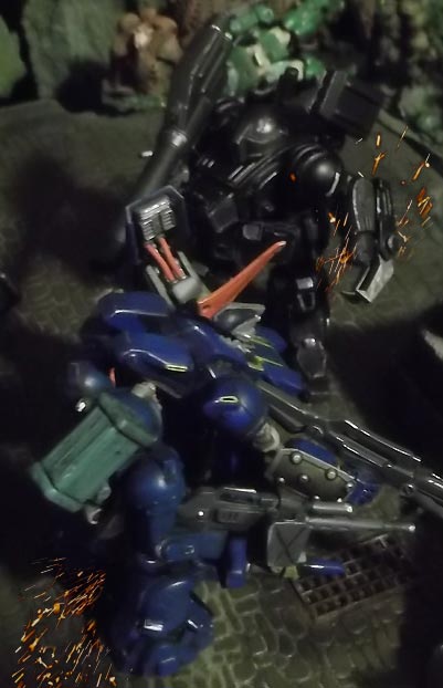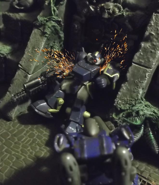 But the Guerillas on guard hear the noise, and a nighttime firefight
