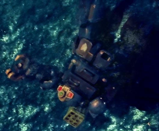 bloated corpse in a Red Shoulder uniform drifts past them down
