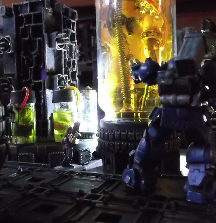 team looks on at some truly bizarre lifeforms held in suspended