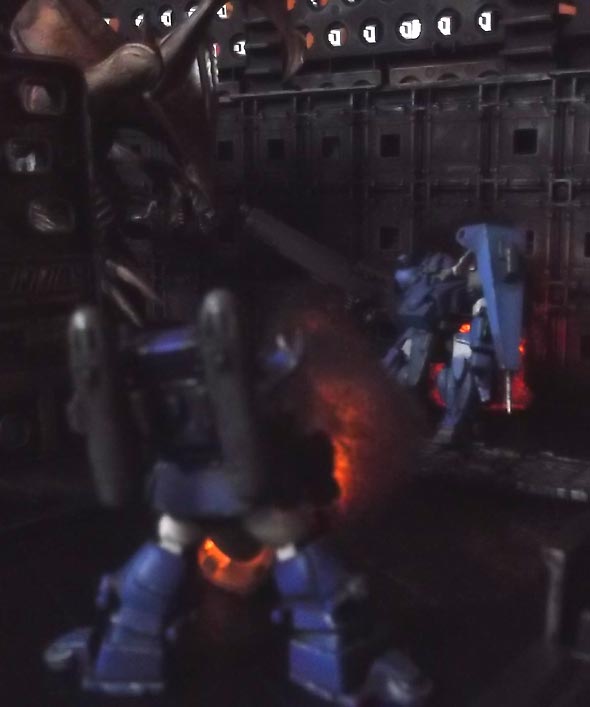 Quey responds in the usual manner, blasting the doors to bits before
