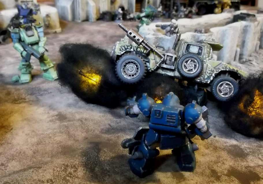 One of the invading Beetle ATs manages to blow up the Sand Rat truck